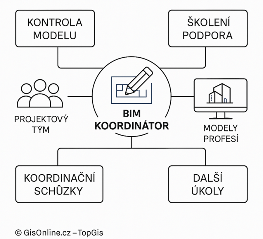 Podle legislativy a příruček pro implementaci BIM v ČR (např. Agentura ČAS) má BIM koordinátor zejména tyto úkoly: